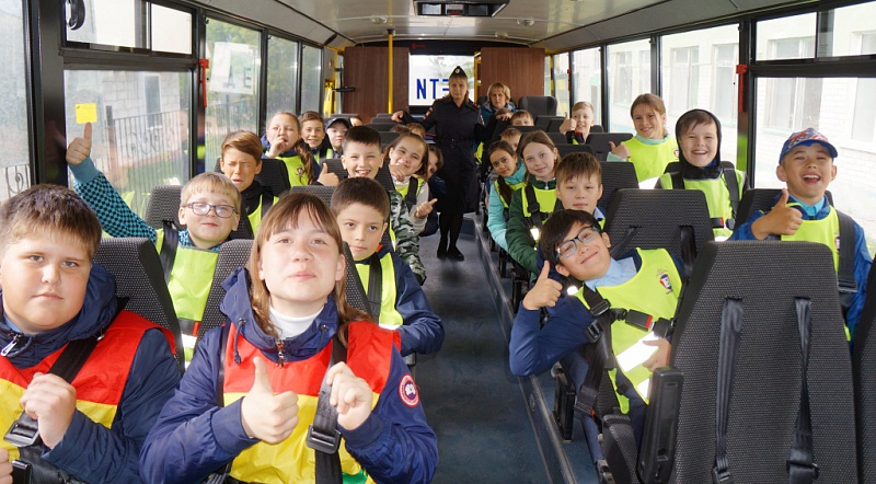 В школьном автобусе ребята отработали навык использования ремня безопасности. Каждый участник тренинга получил памятки и открытки.