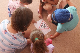 Подростки подготовили сценку, в которой рассказали об основных правилах дорожного движения. Дошкольники приняли активное участие в конкурсах по ПДД: складывали тематические пазлы, отгадывали загадки о дорожных знаках. Специально для этой встречи выпускники детского сада подготовили рисунки на тему правил дорожного движения.