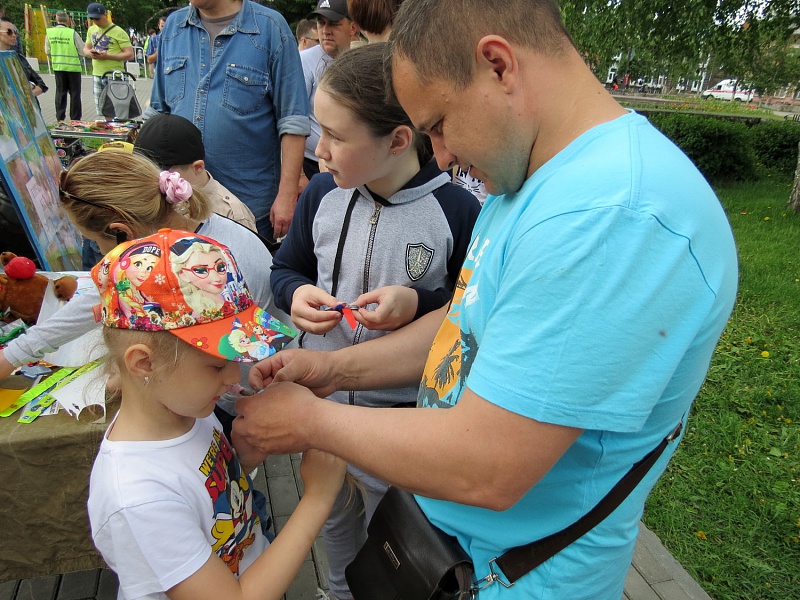 Праздник пап в Томске прошел на Белом озере. Его участниками стали не только папы с сыновьями, но и все члены семьи. Рыцарские бои, демонстрация оружия, стрельба из лука, - словом, все мужские развлечения были представлены. Мастер-класс по изготовлению светоотражающих аксессуаров от сотрудников томской Госавтоинспекции оказался не менее востребованным. Его провели в рамках акции «#Простые_правила». Папы, мамы и дети с энтузиазмом и огромным интересом вырезали наклейки-фликеры, здесь же крепили их на футболки и кепки, мастерили светлячки-подвески и делали световозвращающие аппликации для рюкзаков.