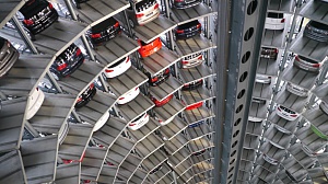 «Пазловый» принцип установки машин на стеллажах для хранения состоит в возможности поочередного и одновременного сдвига платформ таким образом, что всегда существует возможность извлечения автомобиля с любой из них.