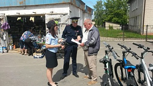 В городе Унеча в местах продажи двухколесного транспорта автоинспекторы проводят беседы по велобезопасности.