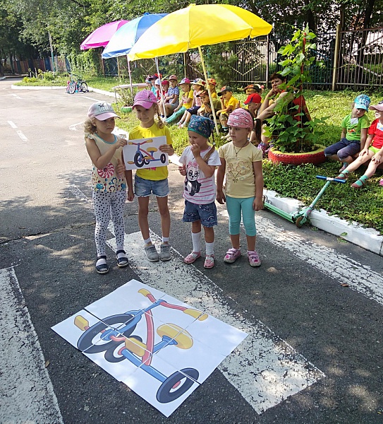 Перед началом состязаний прошла викторина: дети вспомнили значения дорожных знаков, отгадали загадки и ответили на вопросы автоинспекторов по Правилам дорожного движения. Ребята также повторили правила перехода дороги и безопасности в пути.