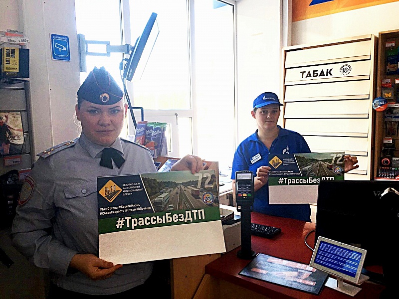 Автоинспекторы провели беседы с водителями транспортных средств по правилам безопасного вождения, призывая к соблюдению скоростного режима и правил безопасного маневрирования. В поддержку акции сотрудники Госавтоинспекции провели фотоссесию с плакатами #ТрассыБезДТП, на которых водители оставили свои пожелания для участников дорожного движения. Плакаты автоинспекторы разместили на автозаправочных станциях и других объектах придорожного сервиса.