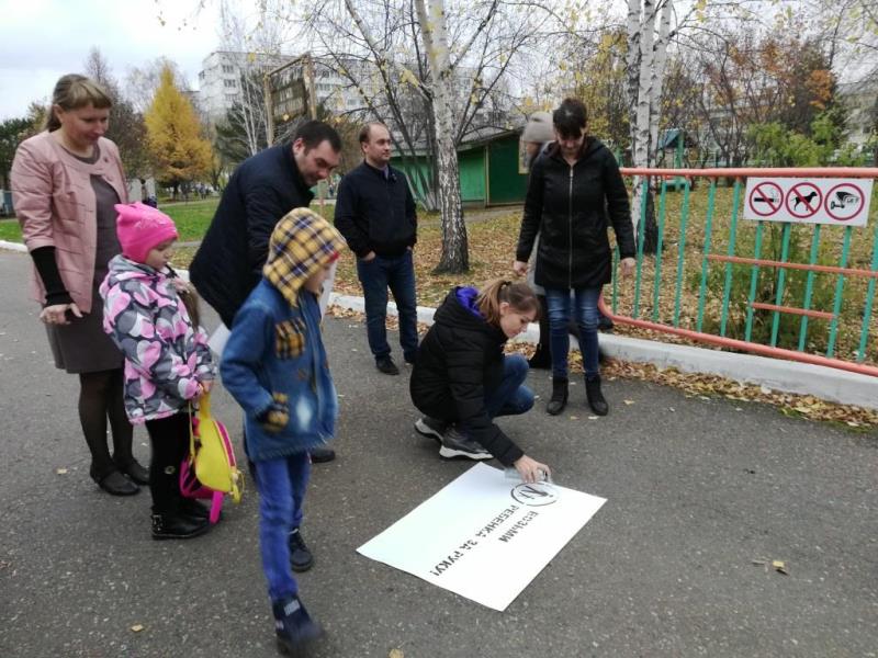 Активные родители нанесли на асфальте перед детским садом сигнальные надписи для родителей. Короткими слоганами активисты предложили взрослым и детям совершить три простейших действия, чтобы выход за территорию учреждения был безопасным. Пешеходов предупреждают: необходимо отвлечься от разговора по телефону, сойти с велосипеда и взять ребенка за руку.