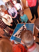 Они с удовольствием устроили гонки радиоуправляемых машин, фигурно управляли самокатом, преодолевали препятствие по подземному переходу, собирали дорожные знаки и попробовали поработать регулировщиками. Сюрпризом для детей стал показ мультфильмов по ПДД на широком экране.