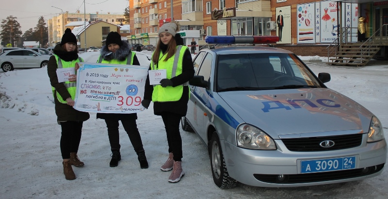 Гимназисты и сотрудники Госавтоинспекции напомнили участникам дорожного движения о ценности человеческой жизни необычным способом. Они подготовили плакат: центральное место заняла цифра 309 – число погибших в ДТП на территории Красноярского края с начала 2019 года.