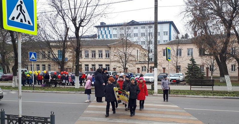На дорогах республики проходит серия пеших массовых экскурсий в формате «Шагающего автобуса». На дорогах Прохладненского района для первоклассников МБОУ Гимназии №6 провели обучающие занятия по ПДД.