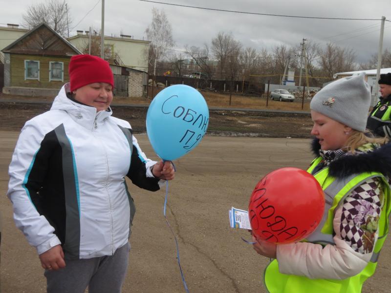 Сотрудники Госавтоинспекции и ЮИДовцы обращались к водителям и пешеходам, призывали их соблюдать правила дорожного движения и дарили воздушные шарики и познавательные памятки.