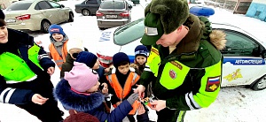 А затем провели экскурсии для первоклассников. Обязательное требование для участников прогулки – наличие на одежде световозвращающего элемента. Автоинспекторы обеспечили ребят необходимыми фликерами. На экскурсии взрослые рассказали детям, какие опасности могут их ожидать на зимней дороге. Дети показали инспекторам, как они переходят проезжую часть и как умеют следовать дорожным знакам.
