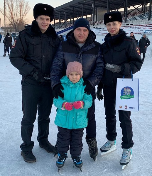 Сотрудники ГИБДД вышли на лед городского катка на коньках и катались вместе с детьми, подавая наглядный пример безопасной игры. Горожане были немало удивлены полицейскими в непривычной роли. Во время катаний сотрудники ГИБДД проводили с детьми профилактические беседы на темы безопасности на дорогах. Все ребята в этот день получили от дорожных полицейских световозвращающие брелоки и конфеты.