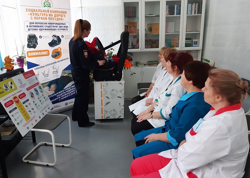 В Боровичской районной центральной больнице сотрудники ГИБДД обучили медицинских работников проведению тренингов по безопасной перевозке детей-пассажиров.