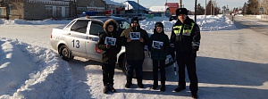 Акция организована сотрудниками ГИБДД Куйбышевского района Новосибирской области и учащимися школы с. Северное. Ее цель - профилактика дорожно-транспортных происшествий, популяризация использования детских удерживающих устройств и ремней безопасности.