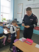 В Емельяновском районе (Красноярский край) дорожные полицейские рассказали учащимся начальных классов сельской школы о пользе световозвращателей и напомнили ПДД для пешеходов. Они повторили правила перехода дороги в отсутствии пешеходного перехода, о том, где и как использовать фликеры.