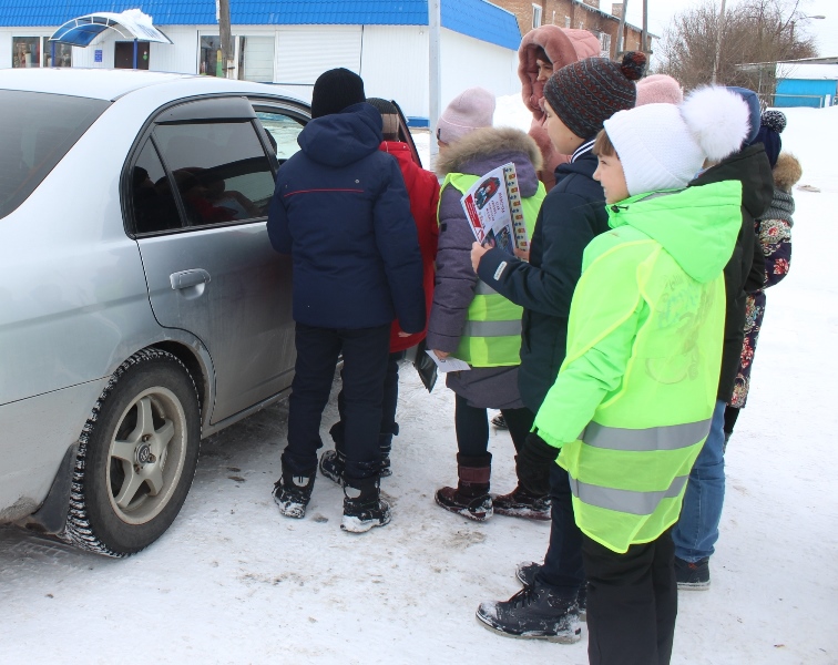 Школьники раздавали водителям информационные листовки с правилами перевозки детей в автомобиле, с пожеланиями всегда пристегивать своих маленьких пассажиров и четко соблюдать Правила дорожного движения.
