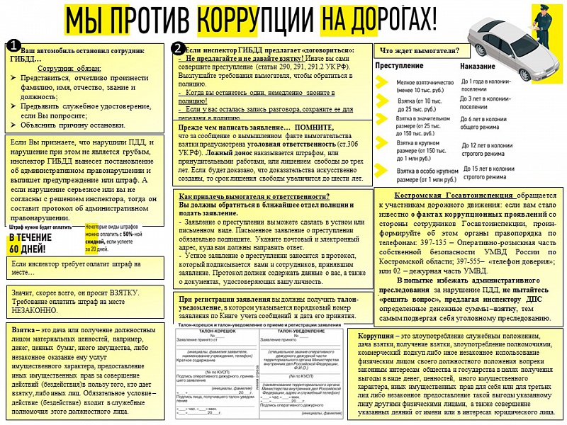 Если же инспектор ГИБДД предлагает «договориться», выслушайте требования, чтобы обратиться в полицию. Если у вас осталась запись разговора, сохраните ее для передачи в полицию. Об этом напоминает Костромская ГИБДД.