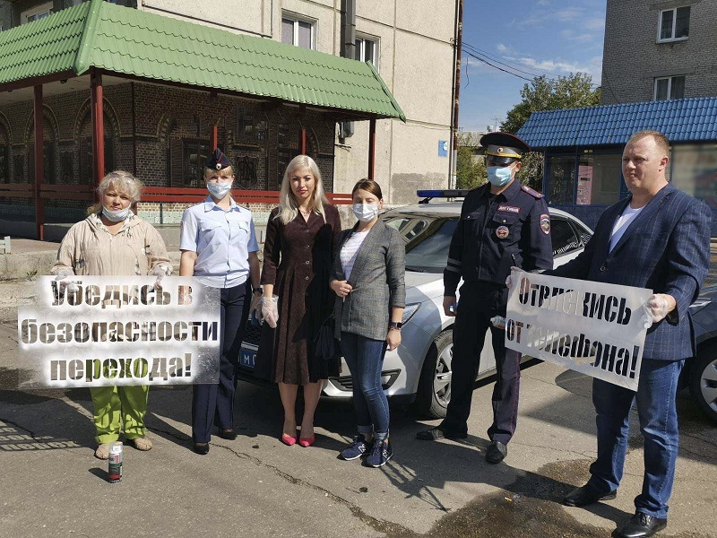 ГИБДД Ангарска и активисты разместили возле «зебр» призывы к пешеходам
