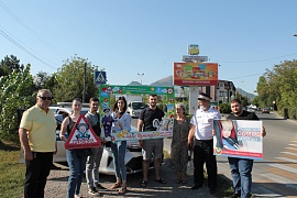 В Ставропольском крае проходит профилактическая акция «Внимание, дети идут в школу!» Волонтеры смастерили тематическую фоторамку «Внимание, на дороге дети!» и вместе с сотрудниками ГИБДД вышли на оживленные перекрестки. Они предложили водителям и пешеходам принять участие в фотопроекте: призвать жителей и гостей курорта к соблюдению правил движения, особенно вблизи образовательных организаций. Каждому участнику они раздавали памятки с информацией по БДД.