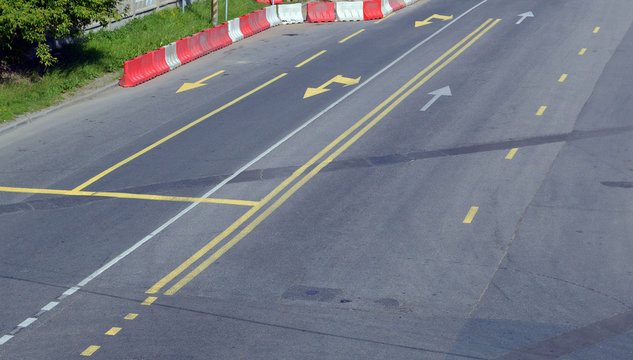 Правила нанесения постоянной и временной дорожных разметок устанавливаются ПДД и ГОСТ Р 51256-1999. В соответствии с ними, горизонтальная разметка на асфальте может быть нескольких видов. Постоянная бывает белого, желтого, красного или синего цвета, а временная — только оранжевой. В соответствии с нормативами, временные полосы движения расчерчиваются, если дорожные работы планируется проводить свыше трех дней. Чаще всего ее наносят на многополосных трассах, чтобы направить транспорт в обход опасного участка и систематизировать его движение на сократившихся полосах. Временная разметка используется также для определения буферного участка перед препятствием и обозначения места работ спецтехники.
