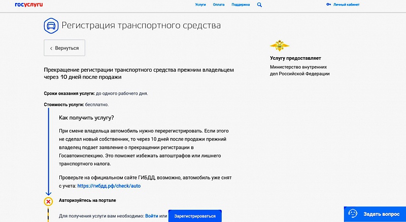 По истечении 10 суток со дня заключения сделки важно проверить, перерегистрирована ли машина на нового собственника. Это можно сделать на сайте ГИБДД в разделе «Проверка автомобиля». Если машина до сих пор числится за вами, нужно прекратить ее регистрацию.