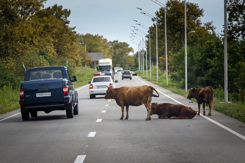 Бродячий домашний скот на дороге представляет опасность для водителей