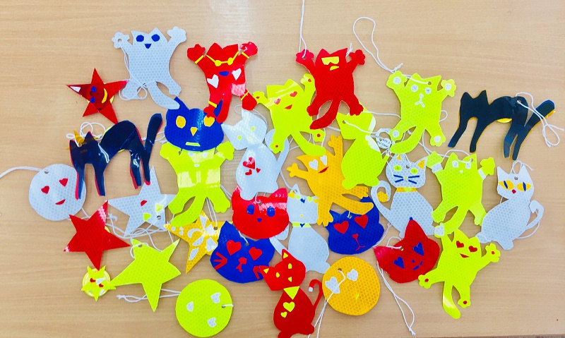 Инспекторы рассказали детям о полезных свойствах фликеров и о том, зачем они нужны пешеходам. Вместе изготовили такие аксессуары для сумок и рюкзаков. За один урок дети смастерили более 70 светящихся значков для себя и своих младших братьев и сестер. Девочки разместили свои световозвращатели на рюкзаки и сумки для сменной обуви, а мальчики - прикрепили к велосипедам и самокатам.