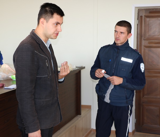 Медицинские инструкторы показали, как на практике оценить степень нарушения жизненно-важных функций и восстановления проходимости верхних дыхательных путей с помощью медицинских укладок, которыми укомплектованы все патрульные автомобили ДПС.