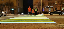 В Красноярске на месте ДТП соорудили инновационный переход Проекционная «зебра» установлена на месте наезда на школьника