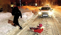 Санкам на дорогах не место! ГИБДД Коми напоминают: на «зебре» ребенка нужно взять за руку и перевести через дорогу пешком