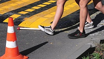В Москве оборудован первый пешеходный переход из резиновых пластин «Зебра» приподнята над поверхностью проезжей части