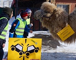 Тюменский верблюд Кеша просит не разгоняться на дорогах ГИБДД Тюмени привлекла верблюда из Зоопарка к акции по безопасности дорожного движения