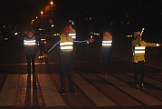 Светящийся «Шагающий автобус» призвал тюменских пешеходов стать заметными на дорогах